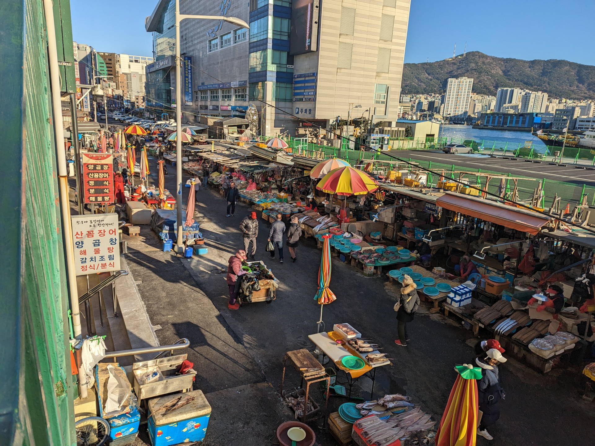 Wir gehen zum „Jalgachi Fish Market“ außerhalb Busan und traditionellen Fisch essen. Aber nicht nur das – Krebs, Shrimps, Muscheln, Krabben, Sashimi, ... alles was schwimmt oder es mal hat.