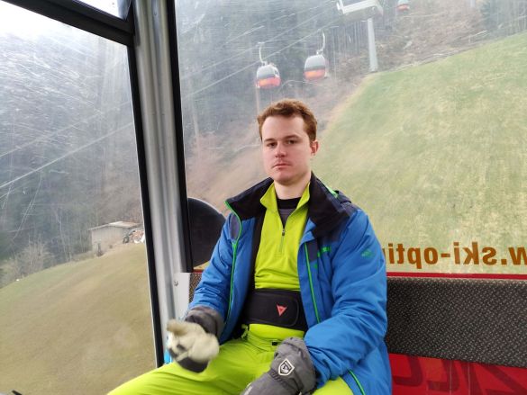 Am nächsten Tag gings los. Bei ... Ausrüstung für Domin und Timo ausleihen - ich habe meine dabei, den teuren Skipass kaufen und hoch auf die Piste.